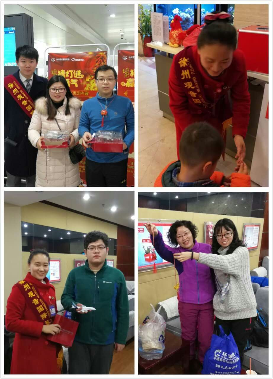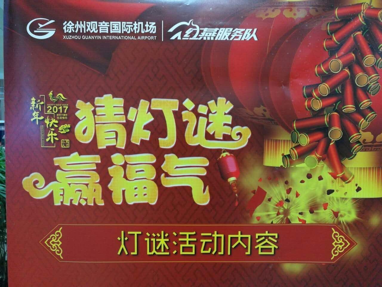 新年佳节兮,聚天地之欢乐,展山川之喜庆,于雪飞中送吉祥之问候,在风舞里赠平安之祝福。2017年1月28日大年初一当天,徐州观音机场红燕服务队以“新春送祝福”为主题,在贵宾厅和候机大厅分别开展了一场与旅客“新春送祝福”的猜谜互动活动,期间吸引了上百位旅客的热情参加。