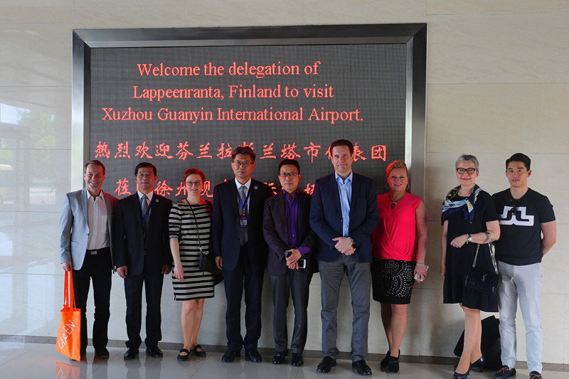 2018年4月27日,芬兰拉彭兰塔市政府代表团(简称“芬兰代表团”)一行6人来到徐州观音国际机场(简称“徐州机场”),市外办主任王连运,徐州机场董事长戴立红、副总经理王健等相关领导接待并陪同参观了机场T1、T2航站楼。